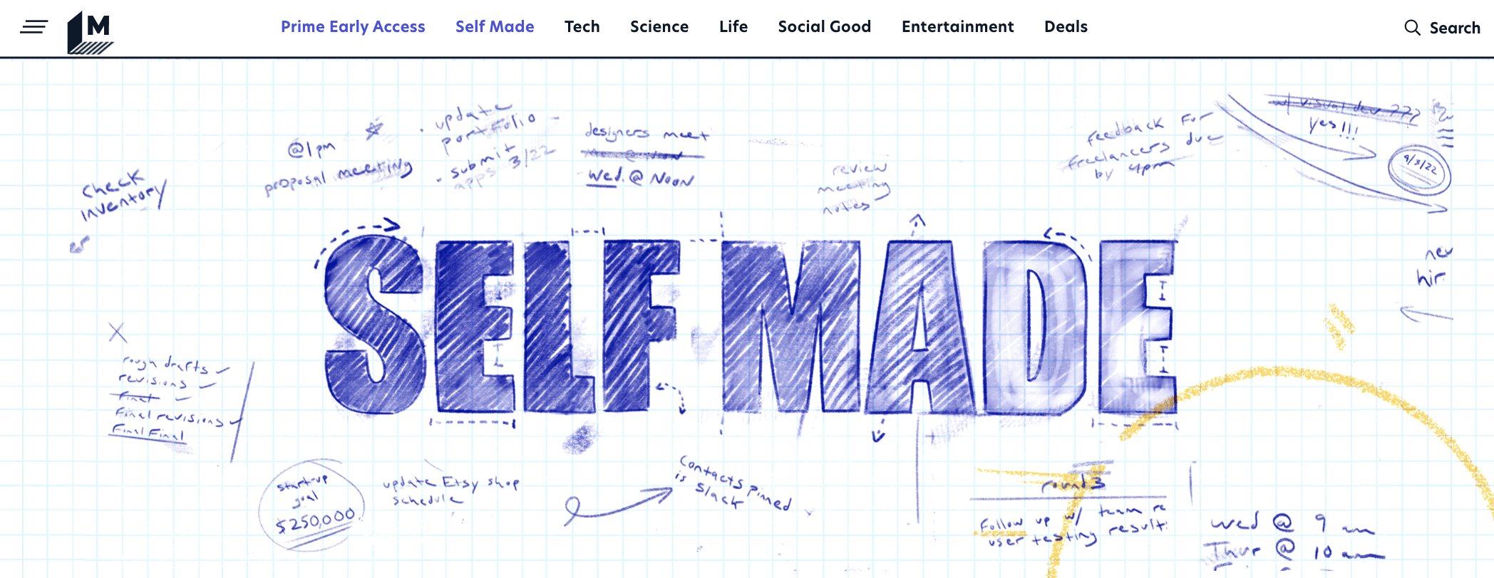 In 2021, more people searched for “how to start a business” than “how to find a job,” according to a Google data scientist Simon Rogers. And every month, our roundup on the best Squarespace templates ranks number one on Google. This got me thinking: People are searching for a way to claim their digital space, even if they don’t have a full blown business just yet. With record interest in entrepreneurship and the gig economy, I pitched and executed this series as a way to capitalize on the clear audience interest. Self Made launched in July of 2022 and within a month Adobe signed on as a sponsor.
